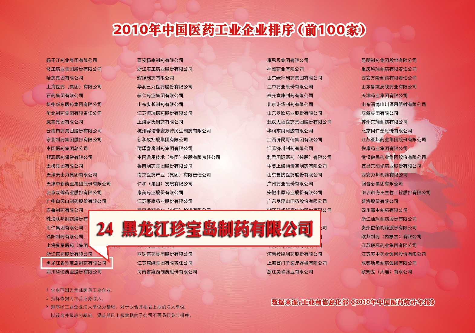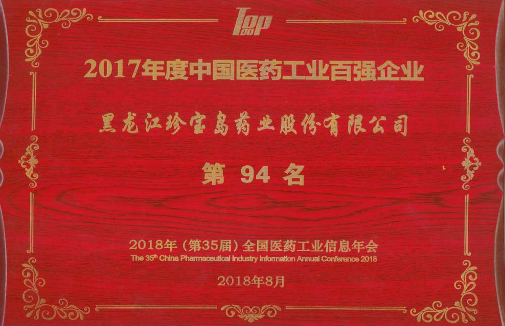 黑龍江珍寶島藥業(yè)股份有限公司成立。企業(yè)躋身中國醫(yī)藥工業(yè)第15強(qiáng)。
