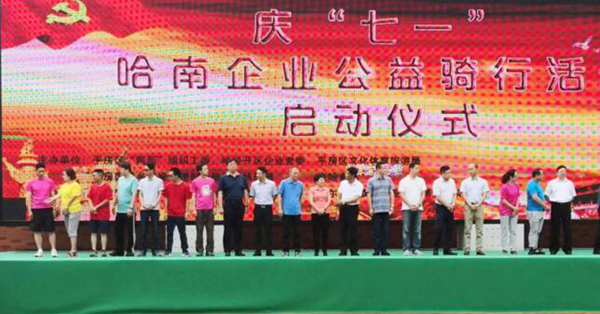 為紀(jì)念建黨97周年,由平房區(qū)兩新工委、哈經(jīng)開(kāi)區(qū)企業(yè)黨委、區(qū)文化體育旅游局主辦的“慶七一”哈南企業(yè)公益騎行活動(dòng)于2018630日在哈南健身廣場(chǎng)隆重舉行。平房區(qū)委書(shū)記、哈經(jīng)開(kāi)區(qū)黨工委書(shū)記劉興閣為巡游隊(duì)伍發(fā)令、領(lǐng)騎。區(qū)委副書(shū)記李兵代表區(qū)委、區(qū)政府為活動(dòng)致辭。公司黨委副書(shū)記、工會(huì)主席董志宏出席啟動(dòng)儀式。