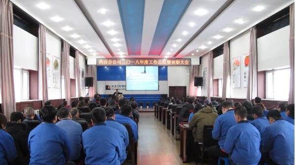 1月25日上午,雞西公司2018年度總結(jié)暨表彰大會(huì)在廠區(qū)培訓(xùn)室隆重舉行。雞西公司中高層領(lǐng)導(dǎo)、年度先進(jìn)集體代表、先進(jìn)個(gè)人、車間班組長(zhǎng)及生產(chǎn)骨干、部分行政后勤代表近100人參加會(huì)議,公司技術(shù)副總經(jīng)理王春生主持會(huì)議。