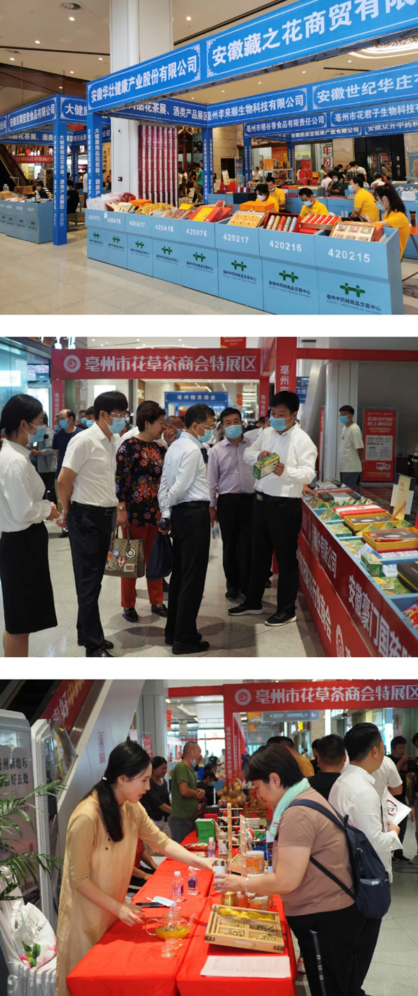 展會(huì)現(xiàn)場一樓有珍寶島集團(tuán)、古井集團(tuán)、亳州市花草茶商會(huì)以及古井鎮(zhèn)名優(yōu)產(chǎn)品展、文旅集團(tuán)文創(chuàng)產(chǎn)品展、亳州市藥膳協(xié)會(huì)藥膳展、康養(yǎng)食品花茶展,二樓為花茶文化藝術(shù)空間及部分花茶展。