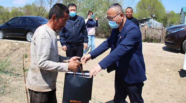 本次文明共建活動(dòng)以雙方聯(lián)誼扶貧慰問的形式,深入珍寶島鄉(xiāng)小木河村新安屯和立新屯四家脫貧戶中,實(shí)地了解困難情況,詳細(xì)研討脫貧措施,并送上了公司生產(chǎn)的產(chǎn)品一次性使用醫(yī)用口罩、復(fù)方芩蘭口服液,以及白面、豆油等生活用品,幫助他們?cè)缛彰撠殹?