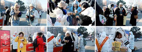 珍寶島藥業(yè)志愿愛心服務(wù)隊在持續(xù)為寒風(fēng)中排隊的全國參觀者、游客送去溫馨服務(wù)之余,更專門為游客熬制了臘八粥。