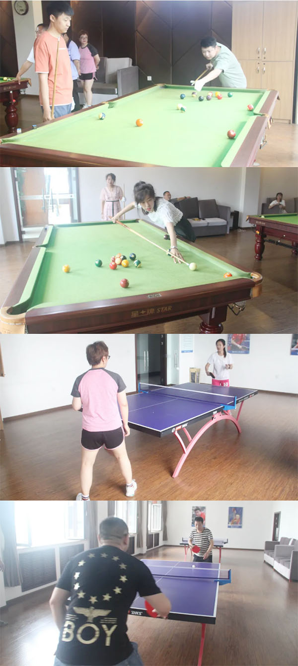 本次全員運動會為期1天半的時間,7月26日一天進行的是臺球、乒乓球和羽毛球比賽。當天均為個人項目比賽,來自各部門、車間40余名選手紛紛展露出驚人的球技和水準。在工作中,他們是生產能手、技術標兵;到了賽場上,他們又變成運動達人、實力悍將。通過淘汰賽過關斬將,晉級決賽,爭奪冠軍。最終,李勇、孫琳分別獲得臺球(男子組、女子組)比賽第一名,趙斌、于鑫分別獲得乒乓球(男子組、女子組)比賽第一名,叢玉強、于珊珊分別獲得羽毛球(男子組、女子組)第一名。